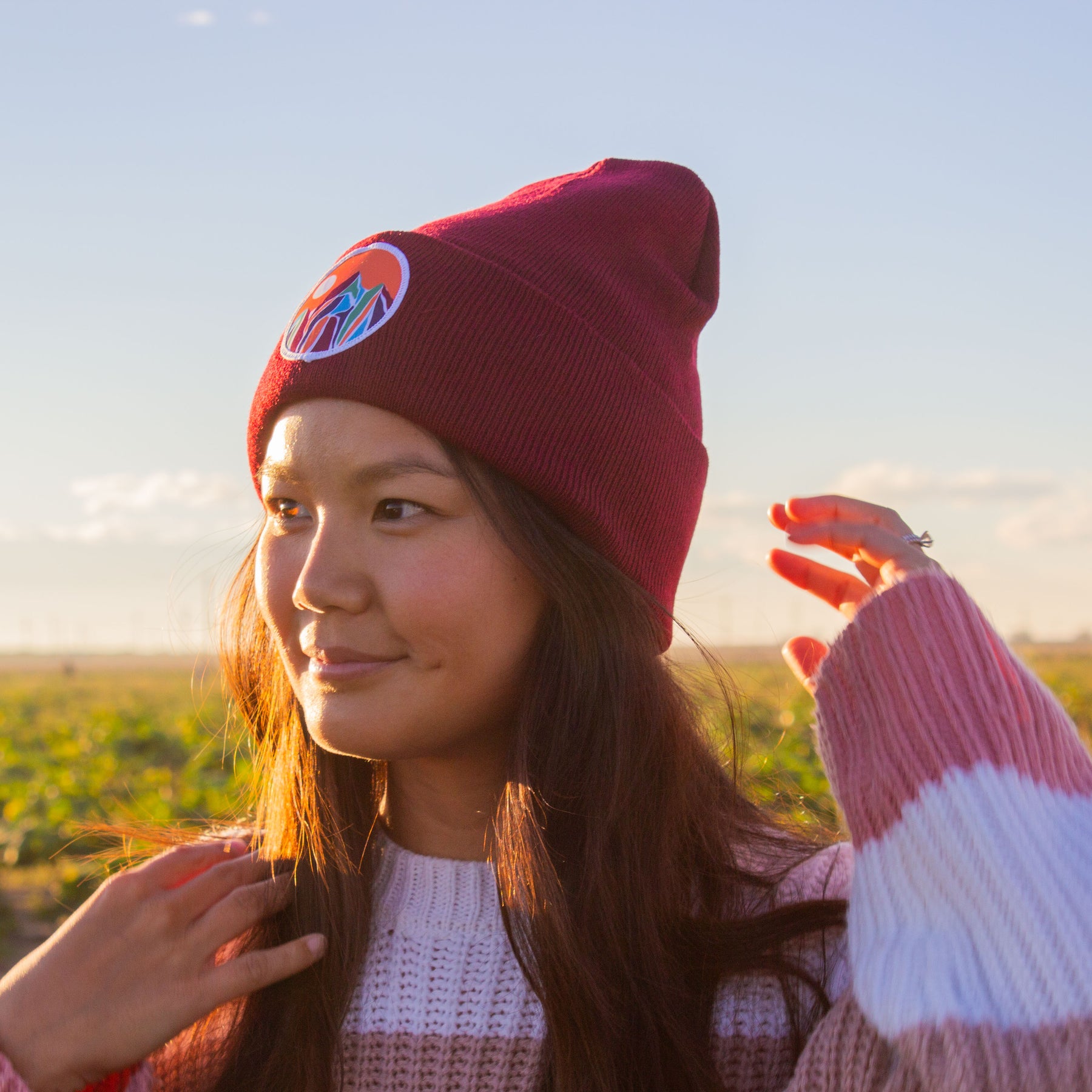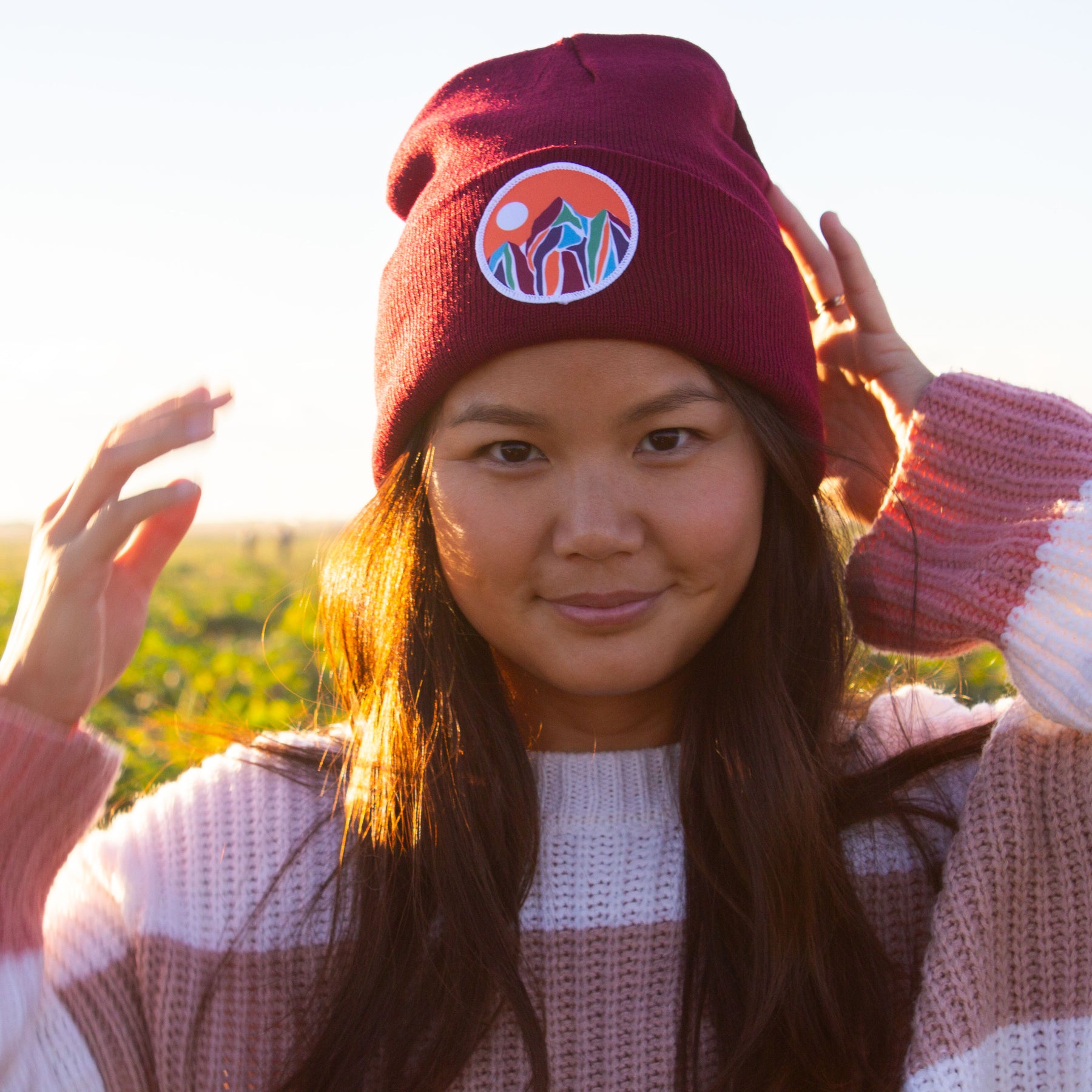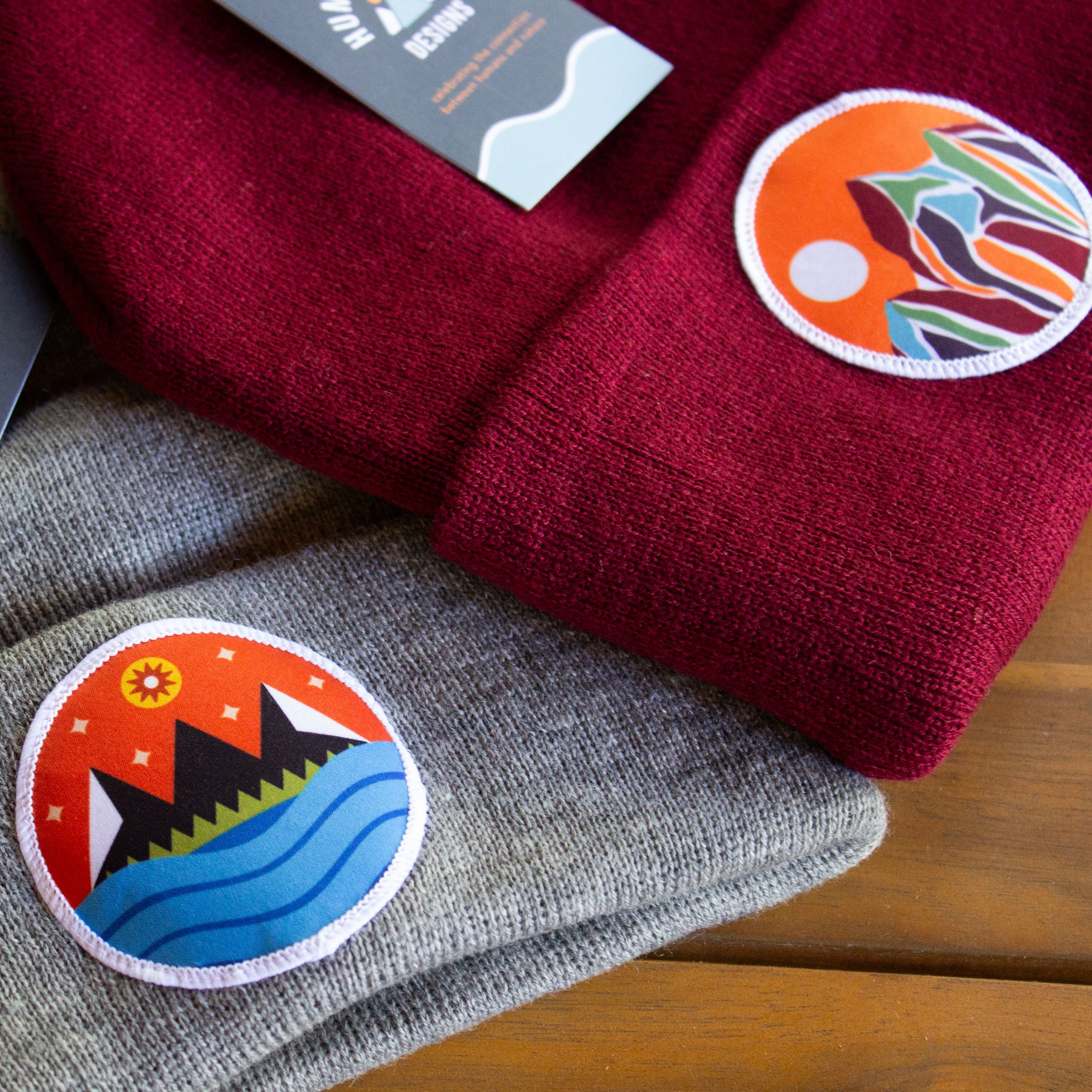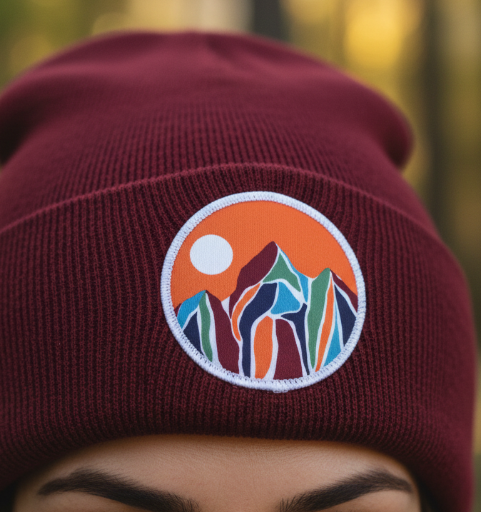 Maroon color with our colorful mountain patch design
