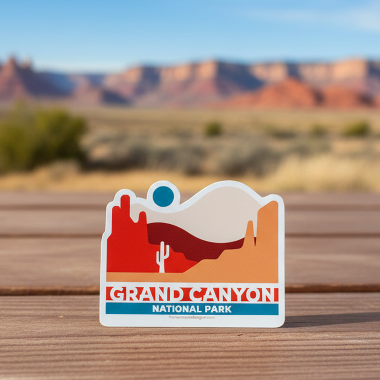 This Grand Canyon National Park Sticker captures the epic beauty of Arizona’s layered red rock cliffs in a bold retro-inspired design. Whether you’re remembering a trip or dreaming of your first visit, this sticker makes a unique gift or souvenir for national park lovers, rafting fanatics, and desert adventurers alike.